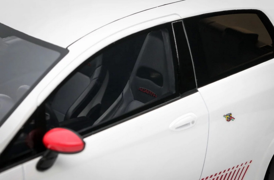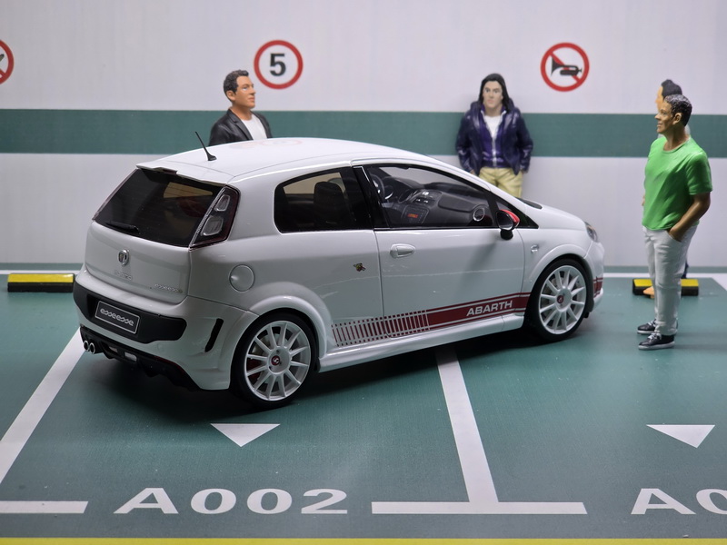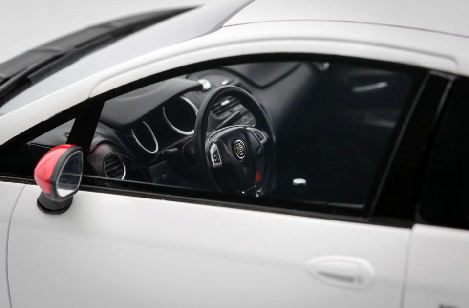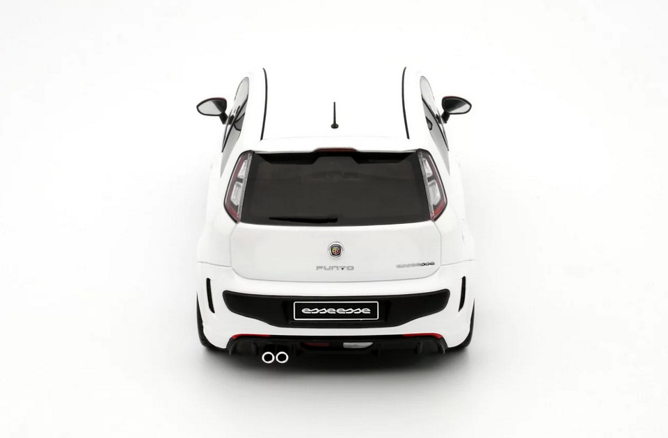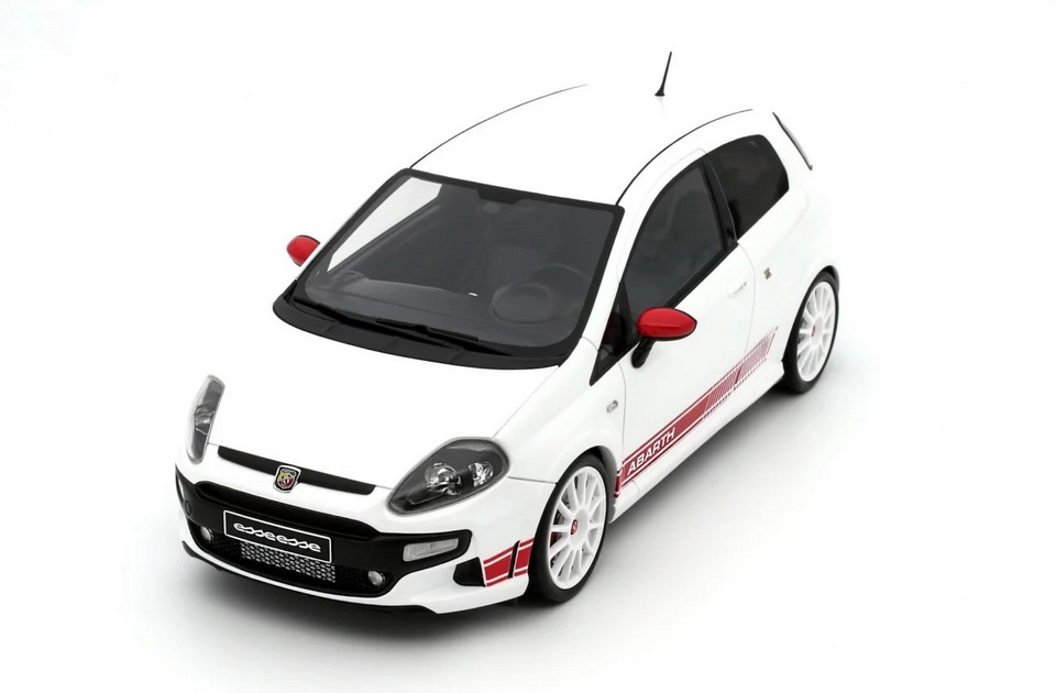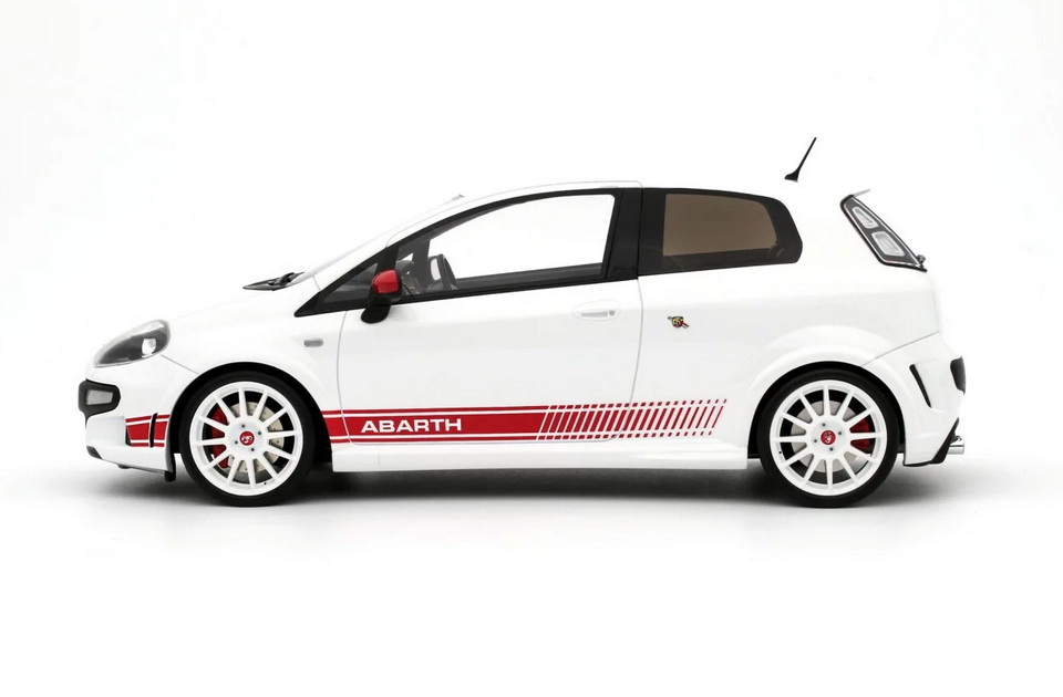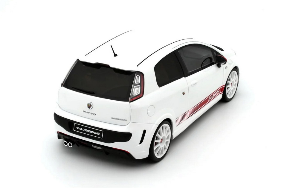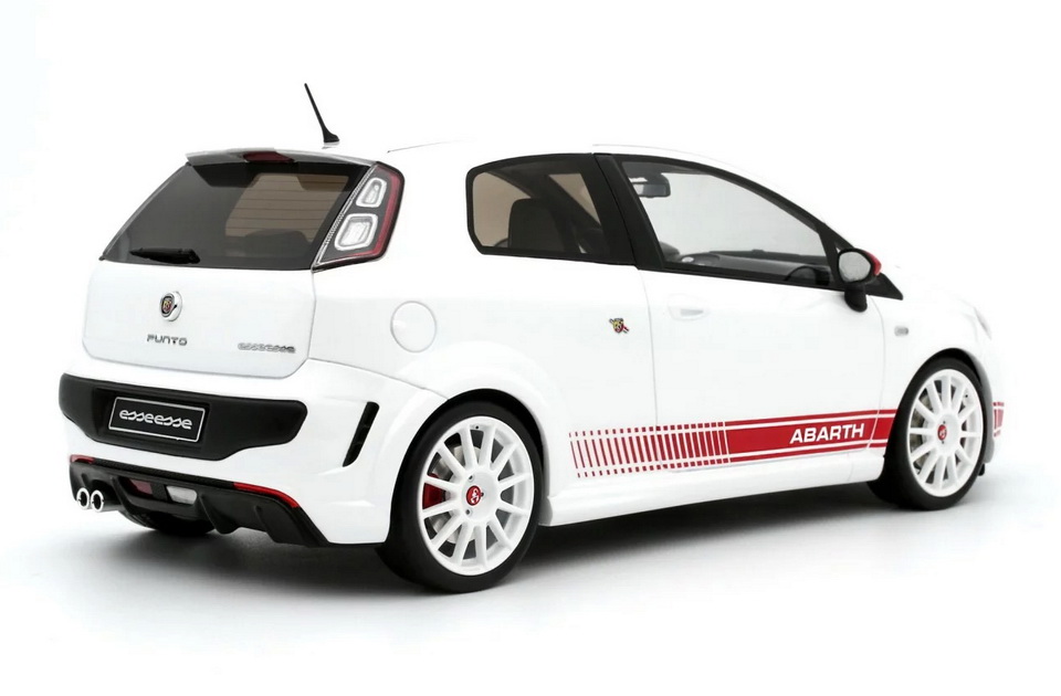 Fiat Punto Abarth Esseesse - rok výroby vozu: 2010 - výrobce modelu: OttO Mobile - měřítko: 1:18 - materiál: resin - barva: bílá (1949 White) - limitovaná edice: 2000ks - vydání modelu: březen 2025 - číslo produktu: OT460 Třetí generace modelu Fiat Punto byla uvedena na trh v roce 2005 pod názvem „Grande Punto“. Byl to úspěch, který pomohl italskému výrobci překonat finanční potíže. O čtyři roky později byla představena druhá verze pod názvem „Punto Evo“. Do hry se vrátila i specializovaná transalpská značka Abarth, která přišla s verzí Evo. Výsledek je senzační a dokonce slouží jako základ pro rallyovou verzi, Grande Punto S2000. Civilní verze se vyznačuje kitem „Esseesse“ s nádhernými bílými koly. Její motor o objemu 1368 cm³ dosahuje výkonu 155 koní a je neuvěřitelně účinný. Není pochyb, Štír je zpět!