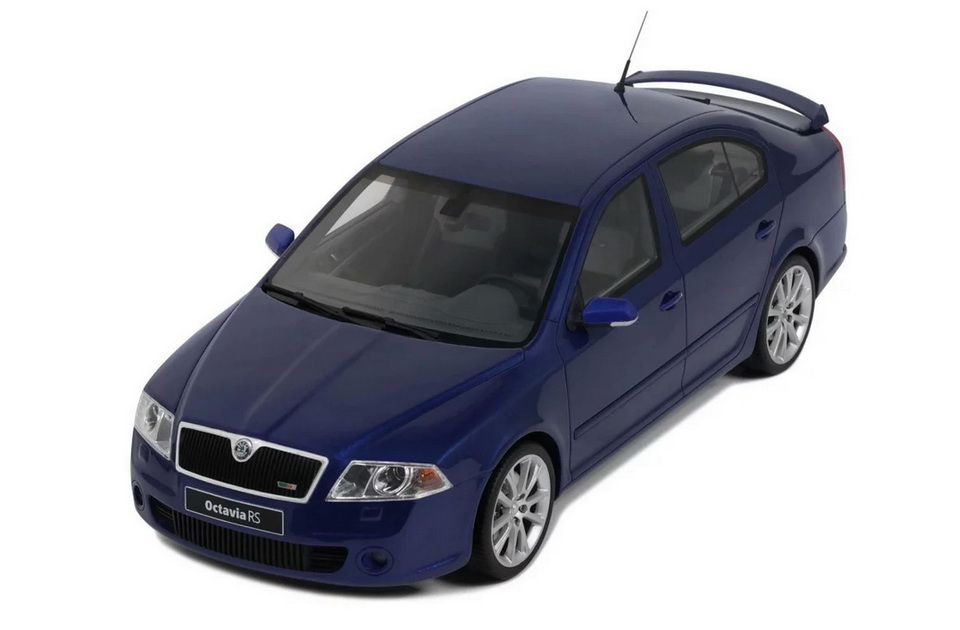 Škoda Octavia RS 2.0 TFSi - rok výroby vozu: 2006 - výrobce modelu: OttO Mobile - měřítko: 1:18 - materiál: resin - barva: modrá (Race Blue Metallic) - limitovaná edice: 2000ks - vydání modelu: duben 2025 - číslo produktu: OT478 První Octavia od Škody pochází z 50. let 20. století. Takto byla pojmenována, protože šlo o osmý model české značky po znárodnění v poválečné éře. Octavia na několik desetiletí zmizela, než byla v 90. letech znovuzrozena na podvozku Golfu IV. Pod vlastnictvím Volkswagenu, se česká značka stala na přelomu tisíciletí populárnější – a to zejména díky Octavii. Druhá generace byla uvedena v roce 2004. Stejně jako její větší sourozenec je k dispozici i ve sportovní verzi. Nazvaná RS, je vybavena motorem TFSI od Volkswagenu, posíleným na 200 koní! Opravdový „zabiják Němců“!