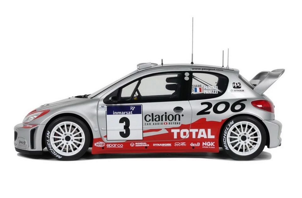 Peugeot 206 WRC Tour de Corse - rok výroby vozu: 2002 - výrobce modelu: OttO Mobile - měřítko: 1:18 - materiál: resin - barva: #3 Panizzi Tour De Corse 2002 - limitovaná edice: 2000ks - vydání modelu: duben 2025 - číslo produktu: OT1085 V sezóně MS v rallye 2002 už má malý Peugeot 206 na kontě dva tituly mistra světa v hodnocení konstruktérů! Francouzský tým nasadil dva stálé jezdce (Marcuse Grönholma a Richarda Burnse), ale většinu sezóny mohl počítat i s Harri Rovanperou a Gillesem Panizzim. Na Rallye Korsika měl francouzský jezdec Citroënu co oplácet! Po porážce od Jesúse Purase v roce 2001 předvedl Gilles Panizzi v roce 2002 na slavné ostrovní rallye bezchybný výkon. Ovládl soutěž od začátku do konce a zajistil tak pro model 206 jeho čtrnácté vítězství ve WRC!