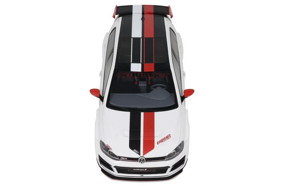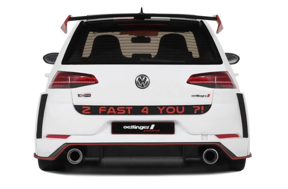 Volkswagen Golf 7 GTI Oettinger - rok výroby vozu: 2019 - výrobce modelu: OttO Mobile - měřítko: 1:18 - materiál: resin - barva: bílá (Pure White) - limitovaná edice: 3000ks - vydání modelu: říjen 2024 - číslo produktu: OT1050 Golf 7 TCR (zkratka pro Touring Car Racing) uzavírá prodej sedmé generace Golfu ve finální, extrémní verzi, která vzdává hold šampionátu okruhových závodů. Pro německého úpravce Oettinger však tato verze není dostatečně radikální. Proto tato německá firma nabízí agresivní widebody kit. Výtvor od Oettingeru zaujme 20" bílými disky kol, které připomínají hry jako Need For Speed nebo Juiced! Tento speciální model, vyvinutý ve spolupráci s Engstler Motorsport, nese na víku kufru výstižný nápis „too fast for you“ – tedy „příliš rychlý pro tebe“. Se svými 355 koňmi je to zároveň nejsilnější Golf 7 vůbec! A bez pochyb i ten nejkrásnější Golf 7, jaký kdy vznikl!
