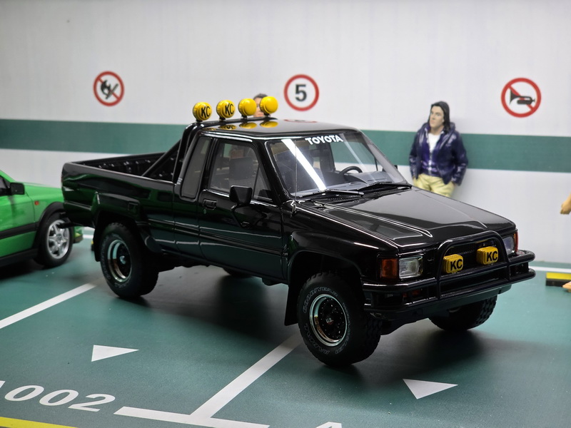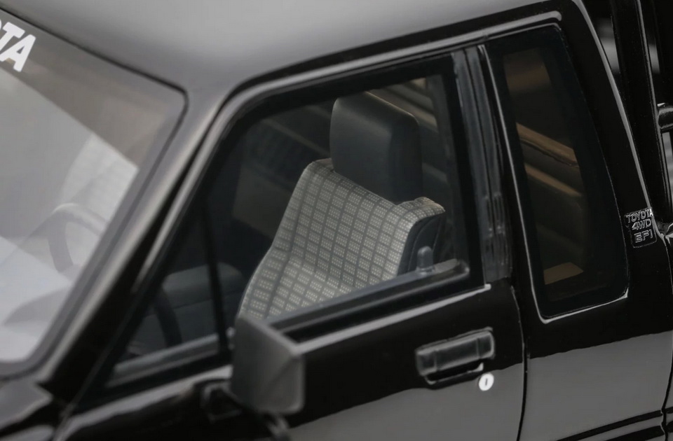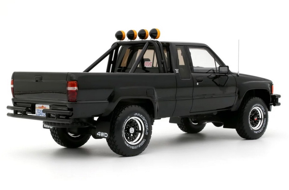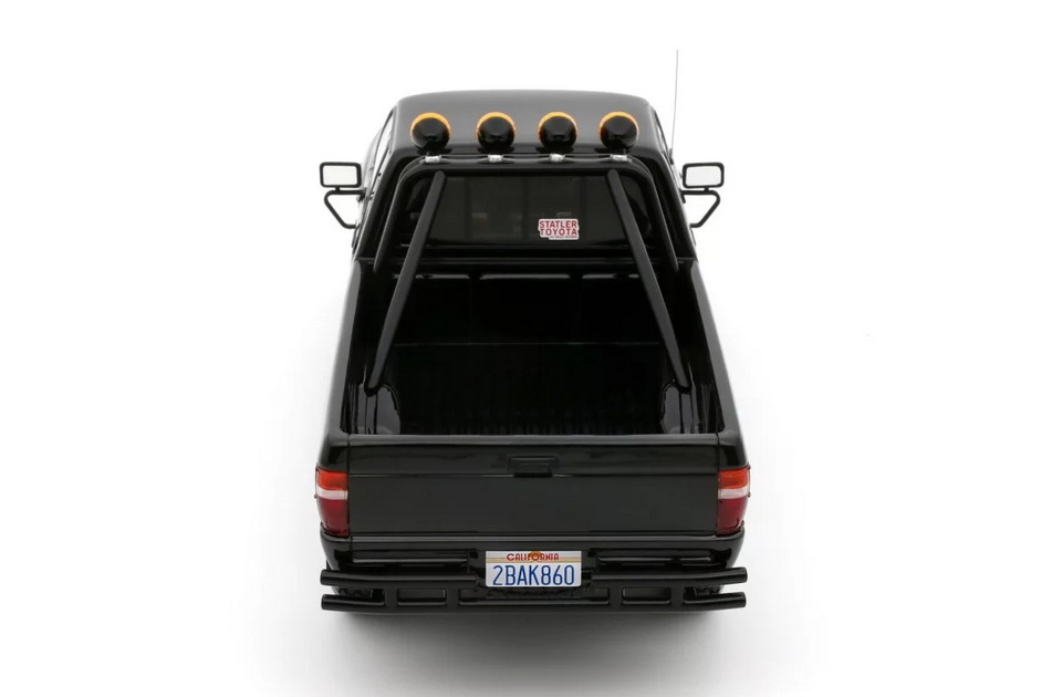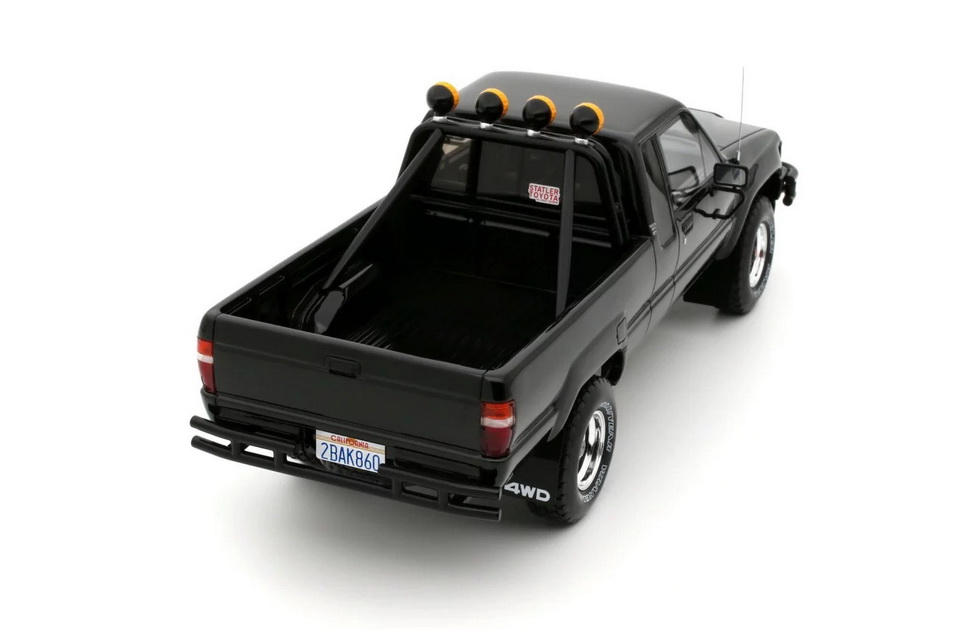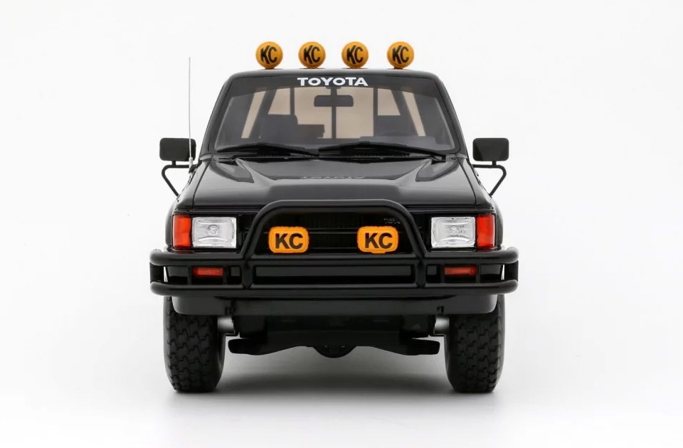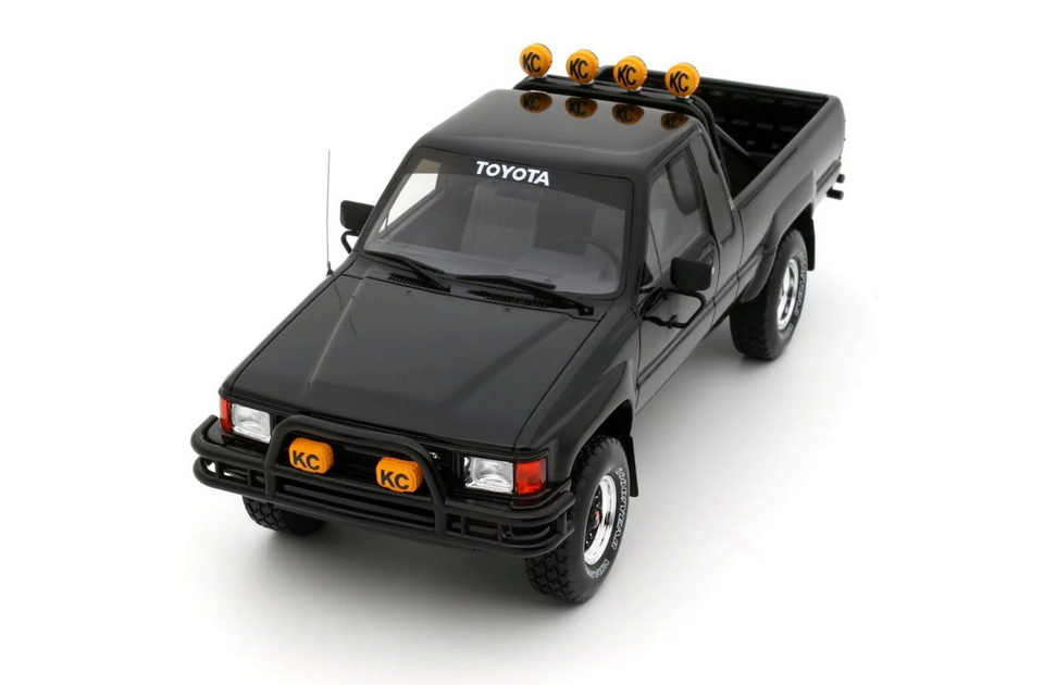 Toyota Hilux SR5 - rok výroby vozu: 1985 - výrobce modelu: OttO Mobile - měřítko: 1:18 - materiál: resin - barva: černá (Glossy Black 202) - limitovaná edice: 2500ks - vydání modelu: červen 2025 - číslo produktu: OT481 Toyota SR5 (Hilux) je jedním z nejikoničtějších modelů japonské značky. "Nazvedaná" varianta Xtra Cab je velmi populární, protože se objevila ve filmu Návrat do budoucnosti. Díky velkým kolům, enormní světlé výšce, černému laku a doplňkovým dálkovým světlometům KC (odkaz na seriál The Fall Guy) se tento model stal skutečnou ikonou! Pro některé je dokonce slavnější než DeLorean DMC-12. V každém případě, v této off-road konfiguraci s rámem za kabinou, je to skutečný unikát, který se shání ještě obtížněji než DeLorean!