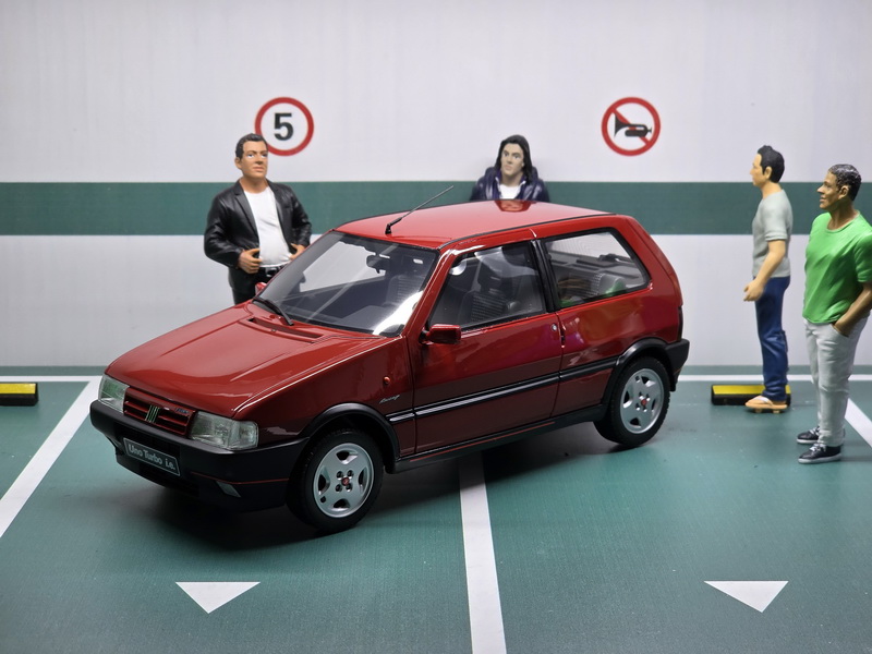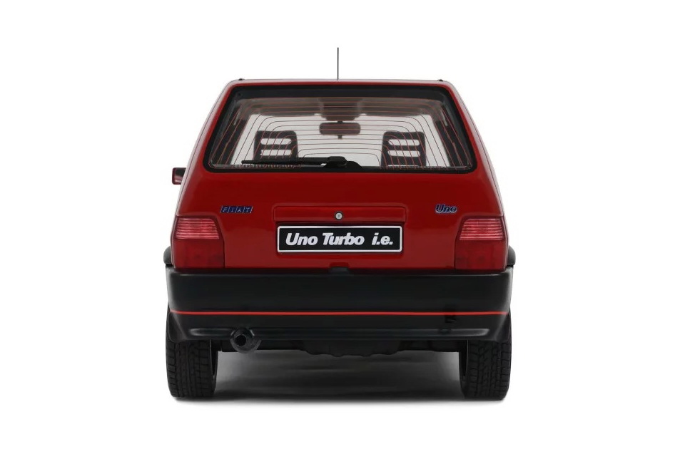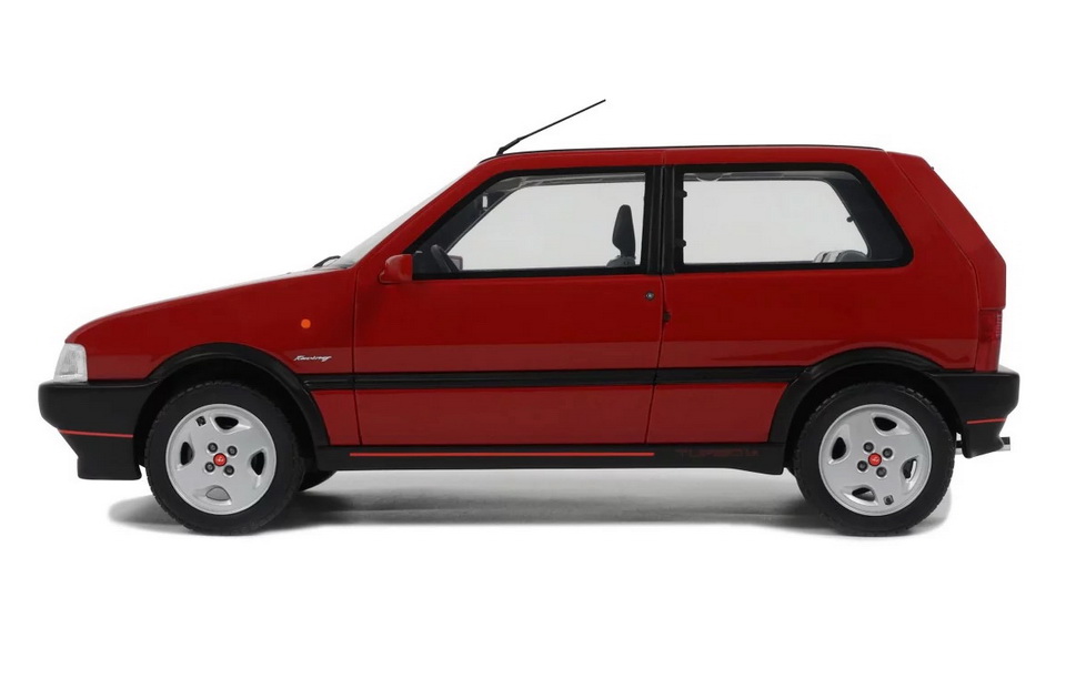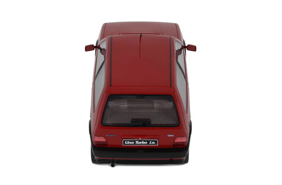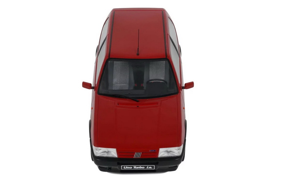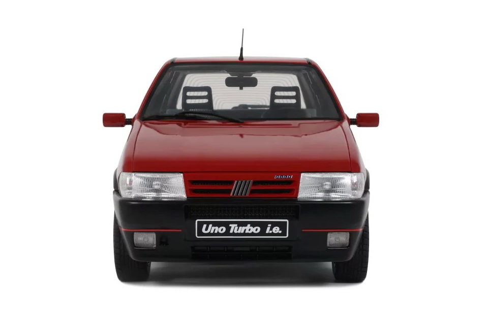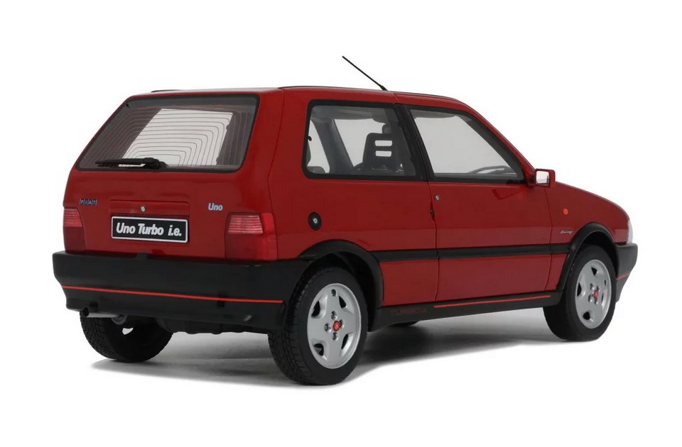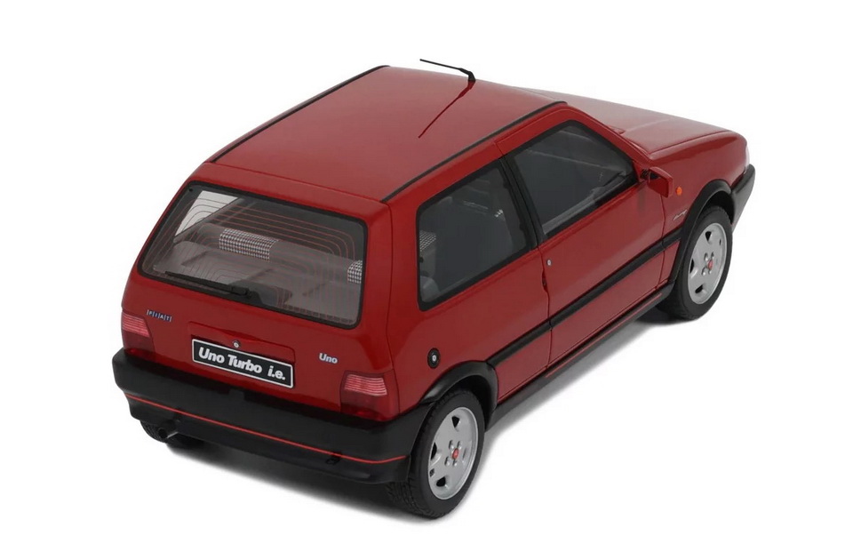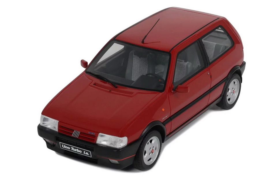 Fiat Uno Turbo i.e - rok výroby vozu: 1990 - výrobce modelu: OttO Mobile - měřítko: 1:18 - materiál: resin - barva: červená (Rosso Racing) - limitovaná edice: 2000ks - vydání modelu: červenec 2025 - číslo produktu: OT487 Fiat Uno patřil k nejprodávanějším vozům počátku 80. let. Italská značka znovu definovala prostor a praktičnost městského vozu. Aby Fiat mohl konkurovat sportovním verzím v segmentu (205, Renault 5, Fiesta, Golf...), představil v roce 1985 sportovní verzi Uno Turbo i.e (Iniezione Elettronica – elektronické vstřikování). O čtyři roky později prošel Uno Turbo i.e faceliftem. Novou verzi snadno poznáme podle masky připomínající model Tipo! U této příležitosti byl výkon motoru zvýšen ze 105 na 118 koní.