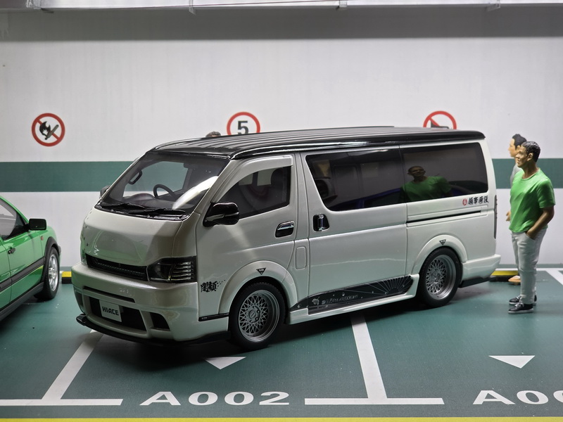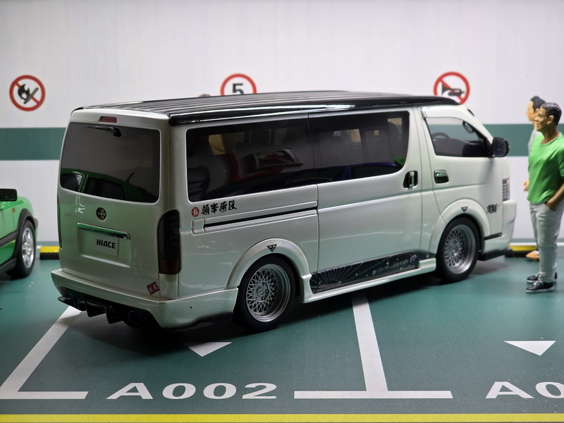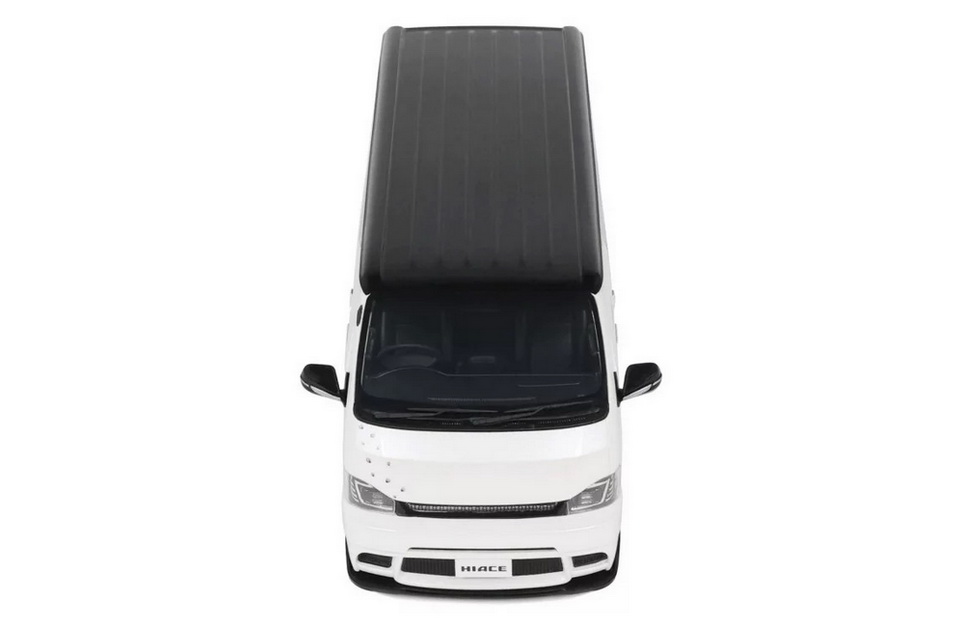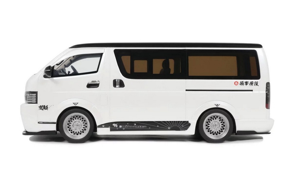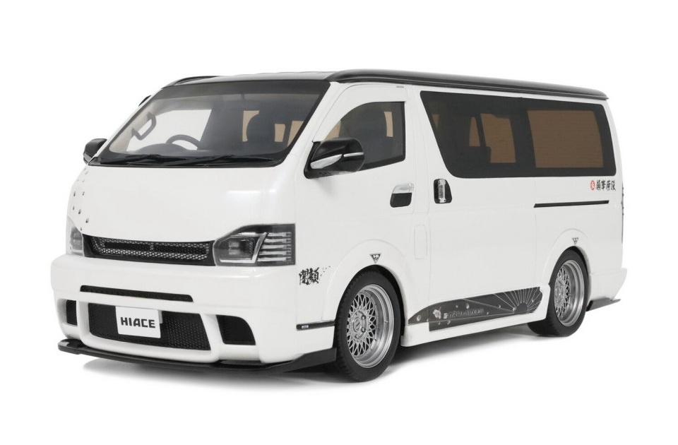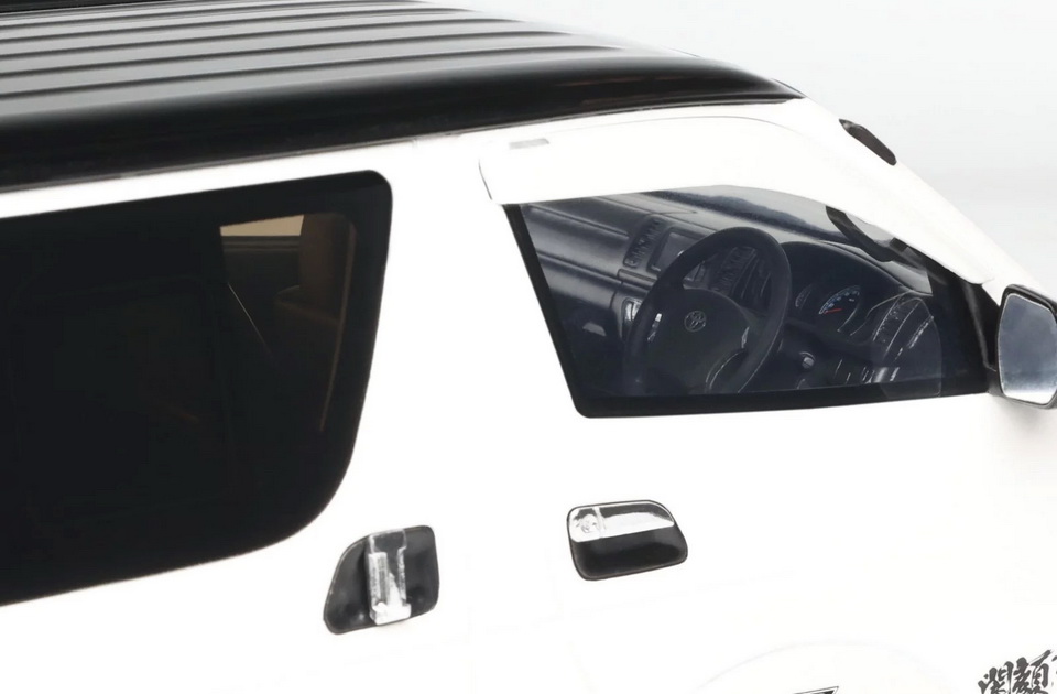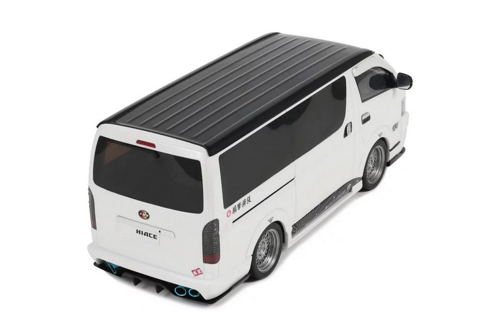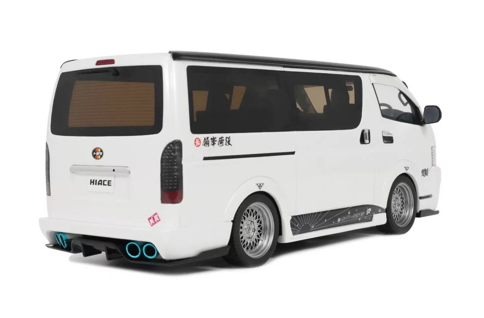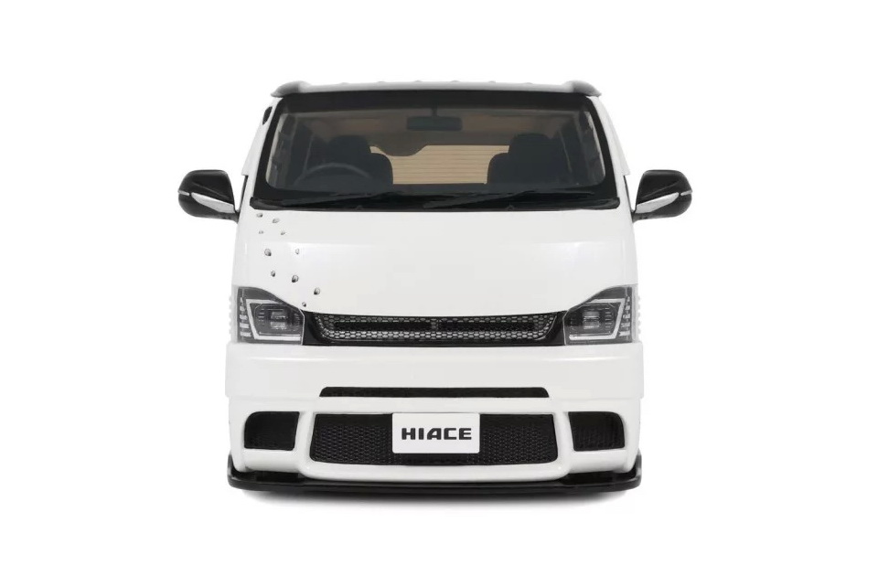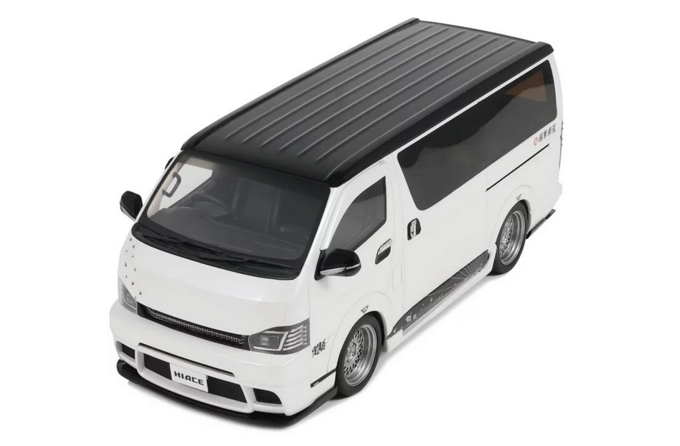 Toyota Hiace Super GL Custom - rok výroby vozu: 2008 - výrobce modelu: OttO Mobile - měřítko: 1:18 - materiál: resin - barva: bílá (Pearl White) - limitovaná edice: 999ks - vydání modelu: září 2025 - číslo produktu: OT1136 Toyota HiAce je v Japonsku velmi oblíbené užitkové vozidlo. Nabízí se ve verzích se 3, 15 nebo 16 místy k sezení. Ačkoli je v Evropě téměř neznámá, v Asii patří mezi nejprodávanější modely značky. Zde je představena ve své 4. generaci, která zaujme velmi „manga“ stylem. Její roztomilou „tvářičku“ na ulicích Tokia rozhodně nepřehlédnete – zvlášť v tuningové verzi! S agresivnějším vzhledem, pavučinovými koly a roztomilými nápisy na karoserii působí tato upravená HiAce originálně, přesto však decentně – bez použití bodykitu. Originální automobilový výtvor, který skvěle ukazuje rozmanitost japonské automobilové kultury.
