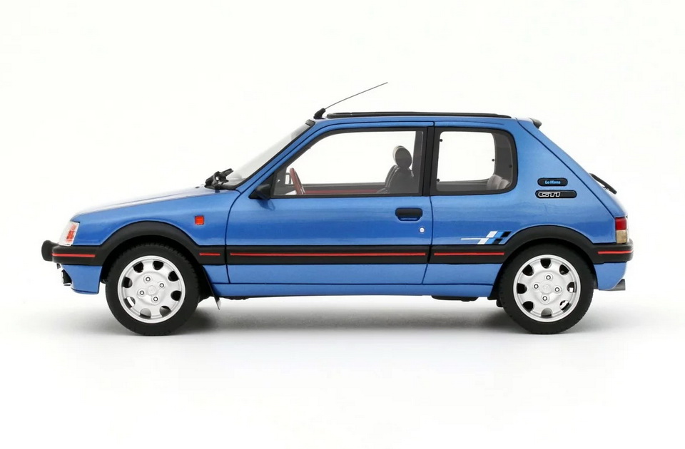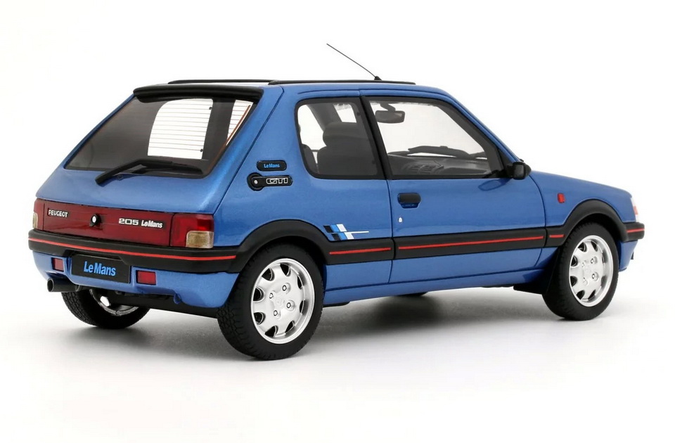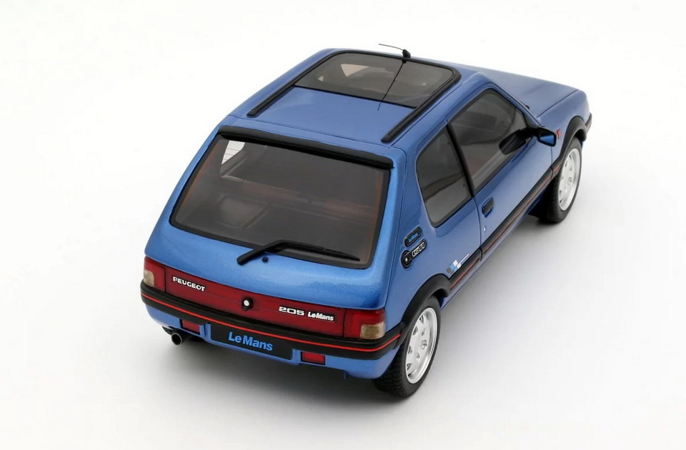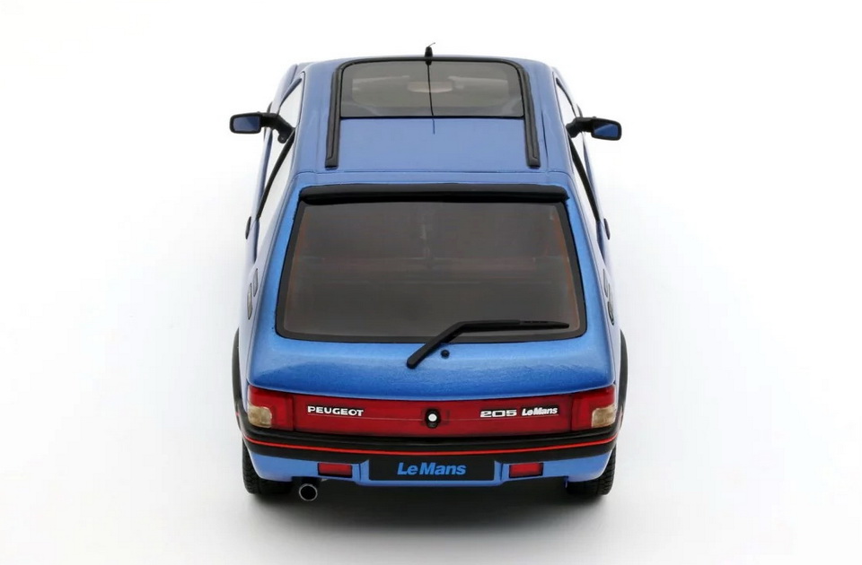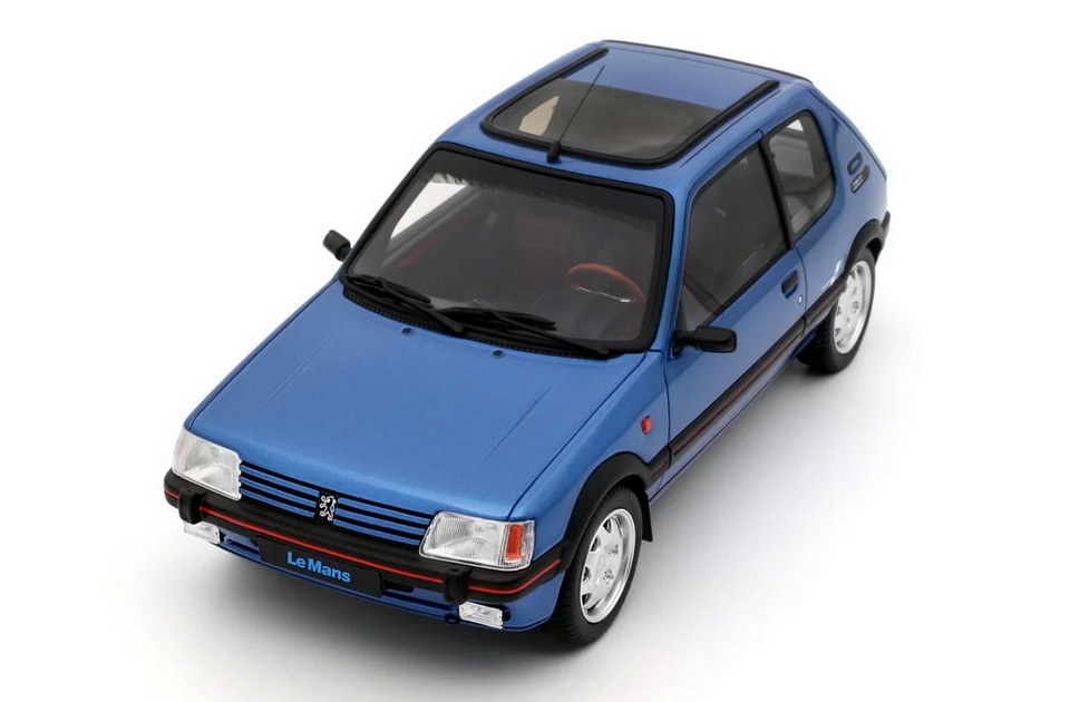 Peugeot 205 1.9 GTI Le Mans - rok výroby vozu: 1991 - výrobce modelu: OttO Mobile - měřítko: 1:18 - materiál: resin - barva: modrá (Miami Blue) - limitovaná edice: 2000ks - vydání modelu: září 2025 - číslo produktu: OT1153 Peugeot 205 je často označován za ikonický vůz, a to především díky své verzi GTI! Mezi mnoha variantami a limitovanými edicemi modelu 205 a jeho sportovními verzemi vyniká edice „Le Mans“. Vyrobilo se jí pouze 84 kusů určených výhradně pro švédský trh v roce 1991, což z ní činí jeden z nejvzácnějších modelů 205! Odlišuje se barvou Miami Blue, dřevěným volantem a hlavicí řadicí páky, zadním panelem mezi světly, ostřikovači světlometů, předními lapači nečistot a logy Le Mans na karoserii. Pod kapotou se ukrývá čtyřválcový motor 1.9 litru s výkonem 122 koní.