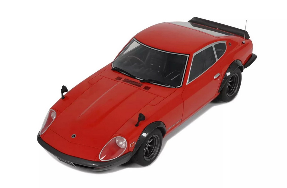 Nissan Fairlady 240 ZG - rok výroby vozu: 1972 - výrobce modelu: OttO Mobile - měřítko: 1:18 - materiál: resin - barva: červená (Grand Prix Red) - limitovaná edice: 3000ks - vydání modelu: září 2024 - číslo produktu: OT457 Datsun 240Z (v Zemi vycházejícího slunce známý jako Fairlady Z) byl kupé vyráběný na počátku 70. let primárně pro americký trh, odkud byl krátce poté exportován také do Japonska a Evropy. Existovaly tři varianty: Z, Z-L a ZG. Verze ZG se vyznačuje charakteristickou přídí typu „G-nose“, která zahrnuje krytá světla, karosářské díly z laminátu a speciální rozšířené blatníky. Model ZG byl určen výhradně pro japonský trh a vznikl za účelem homologace modelu 240Z pro skupinu 4 (GT a rallye). Jde o mimořádně vzácnou verzi!