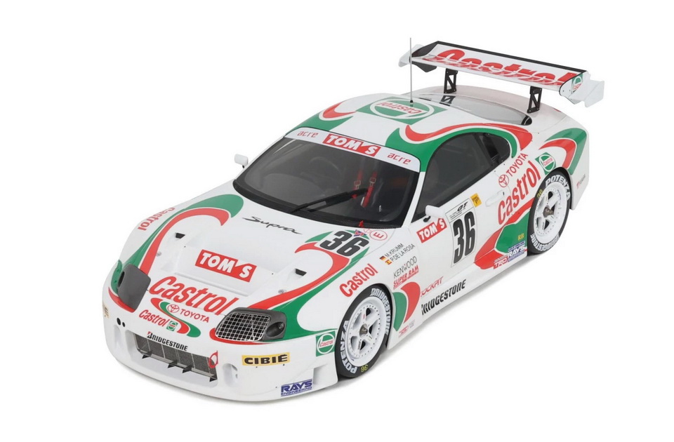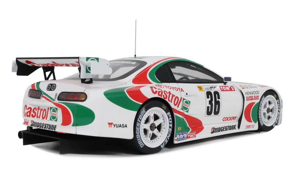 Toyota Supra Racing GT500 JGTC - rok výroby vozu: 1997 - výrobce modelu: OttO Mobile - měřítko: 1:18 - materiál: resin - barva: #36 Krumm / De La Rosa - limitovaná edice: 2500ks - vydání modelu: únor 2026 - číslo produktu: OT494 Toyota Supra Racing GT500 pochází ze šampionátu Super GT (dříve JGTC), japonské série okruhových závodů. Tato extrémní závodní verze modelu Toyota Supra Mk.4 v této disciplíně soutěžila již od roku 1995. Navzdory velmi silným výkonům získala tato závodní zbraň Toyoty mistrovský titul pouze jednou – v roce 1997, kdy ji pilotovali Pedro de la Rosa a Michael Krumm. Díky ikonickému zbarvení Castrol, tehdejšímu oficiálnímu partnerovi Toyoty v motorsportu, se vůz stal symbolem celé série. Celosvětově pak získal obrovskou popularitu díky videohře Gran Turismo. Jako skutečná ikona prvního automobilového simulátoru na konzoli PlayStation 1 okouzlila Supra GT500 celou generaci hráčů a stala se jedním ze symbolů této slavné herní série.